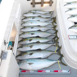 青物狙いでは、朝は予報よりも風が強く波も高く本命ポイントに入れず💦 しかたないので色々なポイントを転々とさせて頂き、時合にはメジロがバタバタヒットで無事に全員安打して頂く事が出来ました😄 途中少しだけヒラメ狙いもして頂きましたがアタリ少なく2ヒット1キャッチでした。