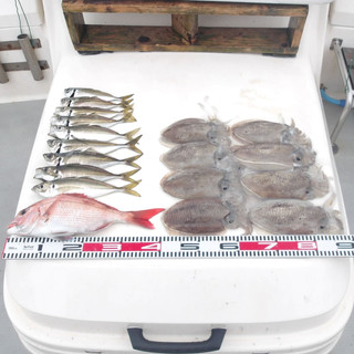 4月3日釣果 本日は4名様チャーター便で、コウイカ&真鯛&大アジ狙いで出船させて頂きました。