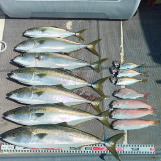 大物狙いでは、時合は一瞬しかありませんでしたが、ブリやメジロを無事に全員安打して頂く事ができ、船釣り初挑戦の方が見事ブリをキャッチされました👍おめでとうございます🎉